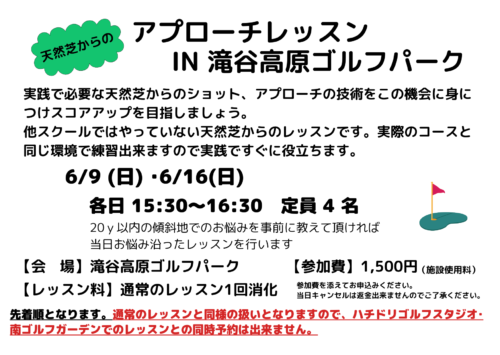 ☆アプローチレッスンin滝谷高原ゴルフパーク開講☆